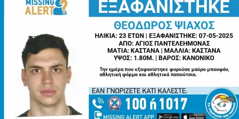 Εξαφάνιση του Θοδωρή Ψιάχου: Μεγάλη κινητοποίηση για τον 23χρονο που χάθηκε στον Άγιο Παντελεήμονα – Αγωνία για την οικογένειά του