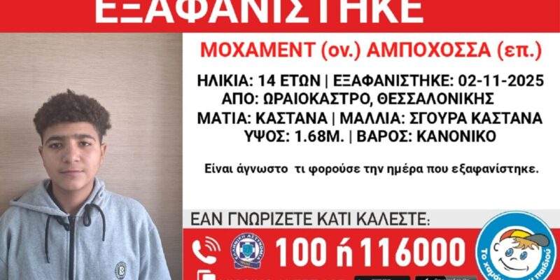 Εξαφανίστηκε 14χρονος από δομή φιλοξενίας στη Θεσσαλονίκη – Η ανακοίνωση από το «Χαμόγελο του Παιδιού»