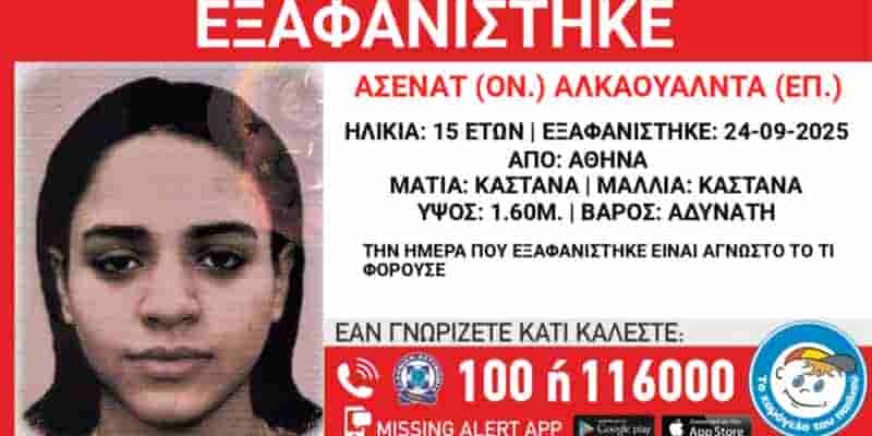 Εξαφανίστηκε η 15χρονη Ασενάτ Αλκαουάλντα από χώρο φιλοξενίας στην Αθήνα
