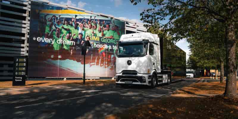 F1: H Mercedes γίνεται η πρώτη ομάδα που χρησιμοποιεί ηλεκτρικά φορτηγά στον στόλο της