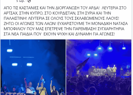 Φεστιβάλ Άρδα: Πανό, σημαίες υπέρ της Παλαιστίνης και… διάγγελμα Κουσινίδη στη χθεσινή συναυλία της Νατάσας Μποφίλιου