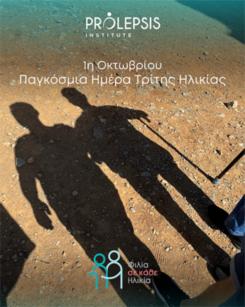 Να στηρίξουμε κοινωνικά τους συνανθρώπους μας μεγαλύτερης ηλικίας που ζουν μόνοι ή βιώνουν μοναξιά και να μην τους ξεχνάμε: Αυτό είναι το μήνυμα του Ινστιτούτου Prolepsis και της ομάδας του προγράμματος Φιλία σε κάθε Ηλικία, με αφορμή την Παγκόσμια Ημέρα Τρίτης Ηλικίας. Σήμερα, η Ελλάδα βρίσκεται ανάμεσα στις χώρες της ΕΕ, με τα υψηλότερα ποσοστά (23%) των πολιτών να είναι άνω των 65 ετών, ενώ υπολογίζεται, ότι περίπου 530.000 ηλικιωμένοι συνάνθρωποί μας ζουν μόνοι τους.