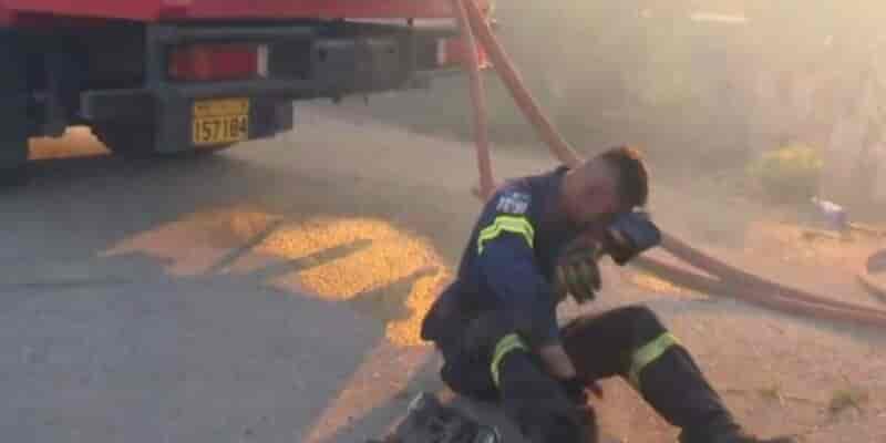 Φωτιά στο Κρυονέρι: Η στιγμη που εθελοντης πυροσβεστης καταρρεει – Τον αγκαλιαζαν οι συναδελφοι του