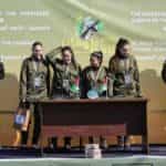Οι τέσσερις γυναίκες στρατιώτες ήταν χαμογελαστές και σε καλή κατάσταση, ενώ ανέβηκαν σε εξέδρα που είχε στηθεί στην πλατεία Παλαιστίνης.