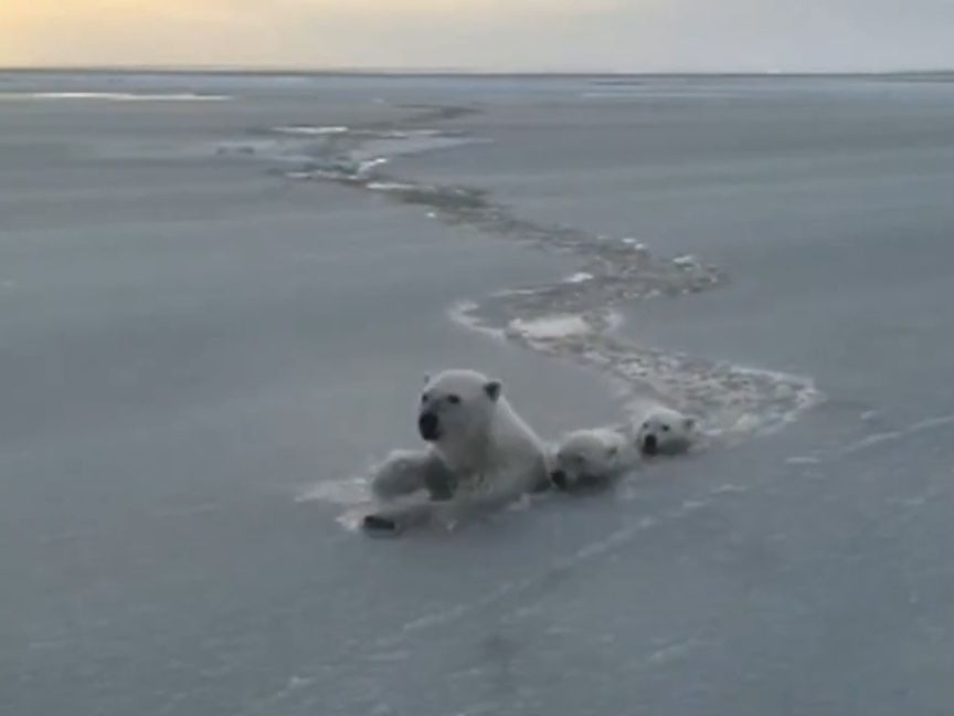 Γιακουτία: Οικογένεια πολικών αρκούδων διέσχισε τα νερά ενός παγωμένου ποταμού