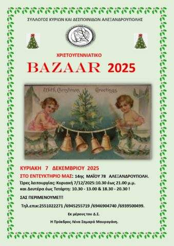 Γιορτινό Bazaar από τον Σύλλογο Κυριών και Δεσποινίδων Αλεξανδρούπολης