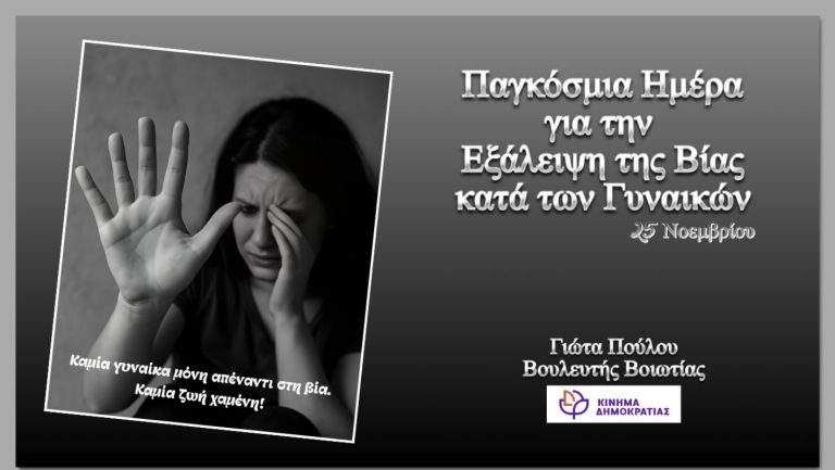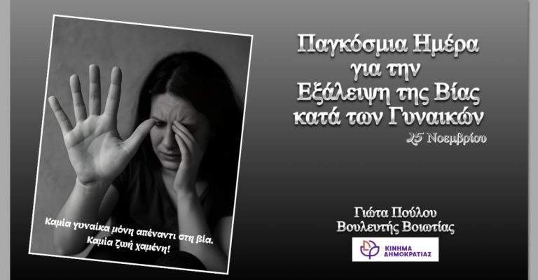 Γιώτα Πούλου: Μήνυμα για την Ημέρα Εξάλειψης Βίας κατά των γυναικών