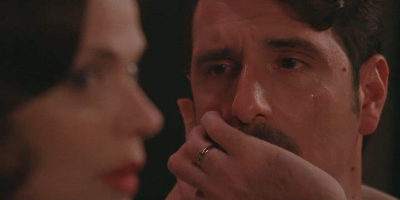Στην αγκαλιά της Κυβέλης σπαράζει ο Ρήγας στο Grand Hotel μετά τη δολοφονία της Ιουλίας, η οποία ήταν η νονά του που αγάπησε.