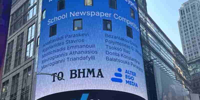 Η Alter Ego Media και ο θεσμός των Μαθητικών Εφημερίδων του Βήματος στο billboard του Nasdaq της Νέας Υόρκης