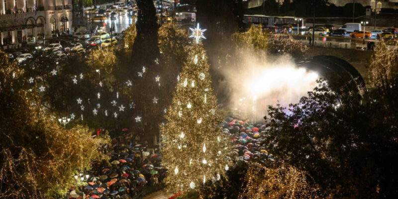 Η Αθήνα φόρεσε τα γιορτινά της, φωταγωγήθηκε το χριστουγεννιάτικο δέντρο στο Σύνταγμα