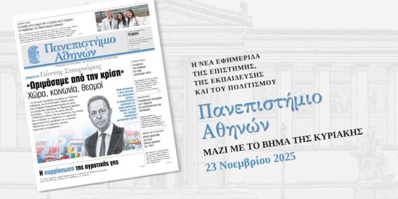 Η εφημερίδα «Πανεπιστήμιο Αθηνών» την Κυριακή 23 Νοεμβρίου με «TO BHMΑ»