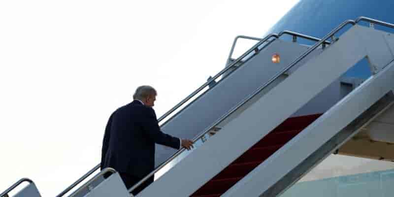 Η εντυπωσιακή αυτοκινητοπομπή που συνόδευσε τον Τραμπ λίγο πριν την αναχώρησή του για την Αλάσκα (video)
