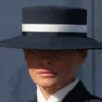 Ενώ όση ώρα εκφωνούσε τον λόγο του με το χαρακτηριστικά αδέκαστο ύφος του η Μελάνια καθόταν στητή, παθητικά αγέρωχη, ατσαλάκωτη, με το βλέμμα ευθεία μπροστά.