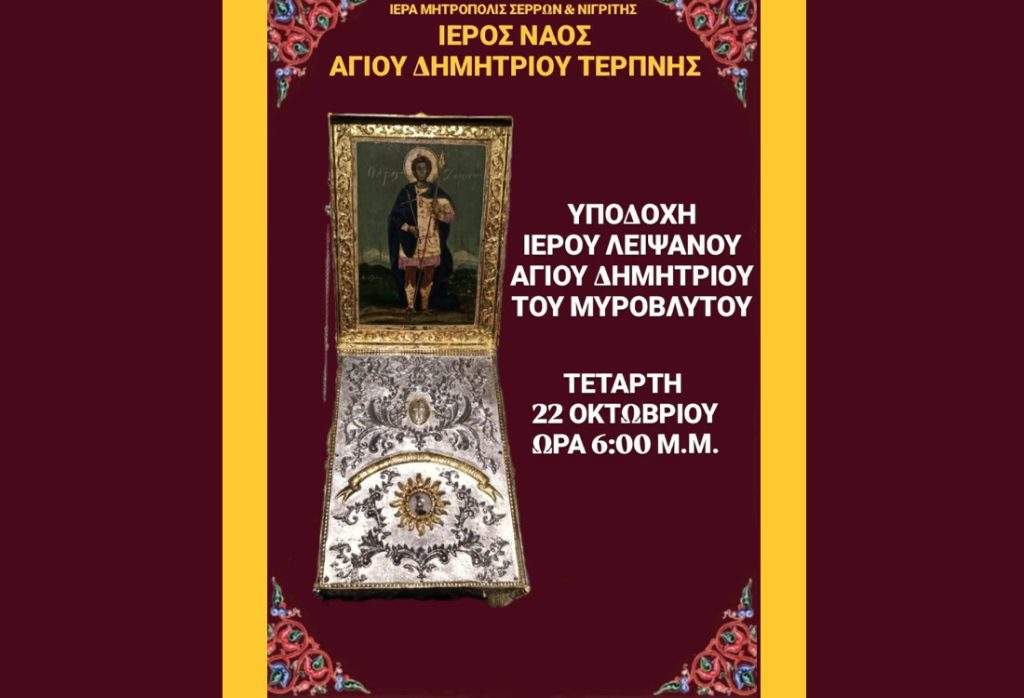 Η Τερπνή υποδέχεται ιερό λείψανο του Αγίου Δημητρίου του Μυροβλύτου