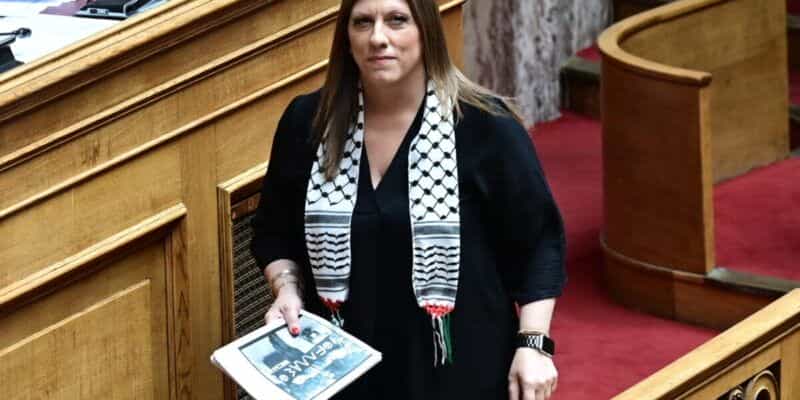 Η Ζωή Κωνσταντοπούλου με παλαιστινιακή «μαντίλα» στη Βουλή