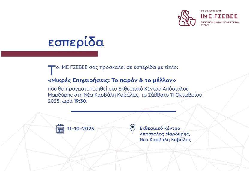 ΙΜΕ ΓΣΕΒΕΕ – Εσπερίδα στην Καβάλα για τις Μικρές Επιχειρήσεις