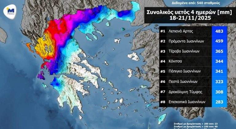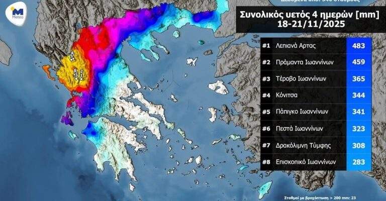 Ηπειρος: «Πνίγηκε» με πάνω από 400 χιλιοστά βροχής το τετραήμερο 18 – 21 Νοεμβρίου