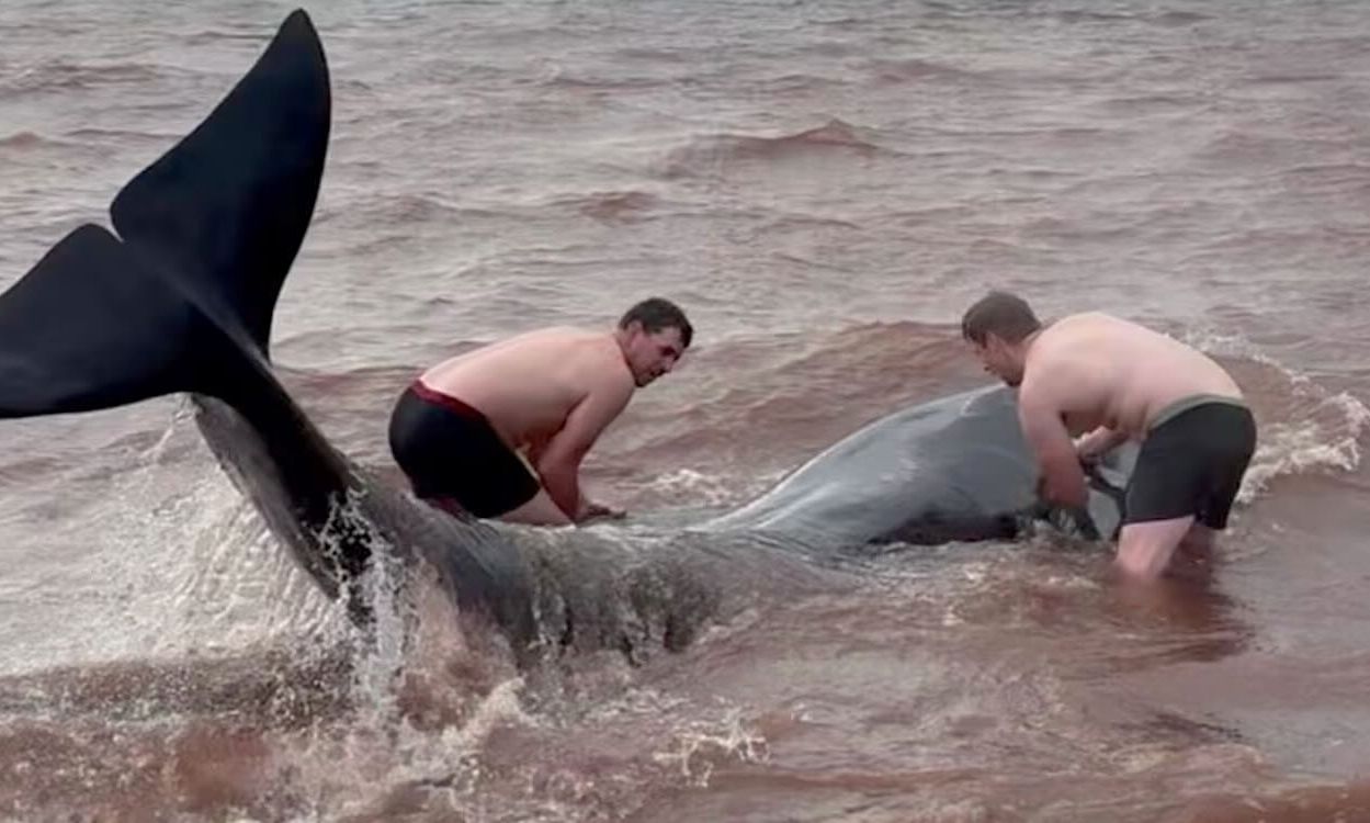 Ηρωική διάσωση: Βούτηξαν με τα εσώρουχα στη θάλασσα για να σώσουν 3 φάλαινες – Βίντεο