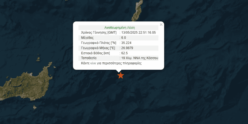 Ισχυρός σεισμός 6 Ρίχτερ μεταξύ Κάσου και Καρπάθου – Μήνυμα από το112 για κίνδυνο εκδήλωσης τσουνάμι