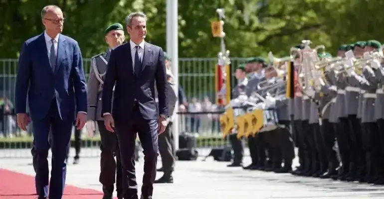 Ολοκληρώθηκε με επιτυχία η πρώτη επίσημη συνάντηση του Έλληνα πρωθυπουργού Κυριάκου Μητσοτάκη με τον νέο καγκελάριο της Γερμανίας, Φρίντριχ Μερτς, στο Βερολίνο.