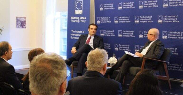 Ο Υπουργός Εθνικής Οικονομίας και Οικονομικών Κυριάκος Πιερρακάκης συμμετείχε σήμερα στο Δουβλίνο σε fireside chat στο Ινστιτούτο Διεθνών και Ευρωπαϊκών Σχέσεων (Institute of International and European Affairs – IIEA) με τίτλο «Η Επόμενη Φάση Ανάπτυξης της Ευρώπης: Ενοποίηση, Καινοτομία και Ψηφιακή Οικονομία».