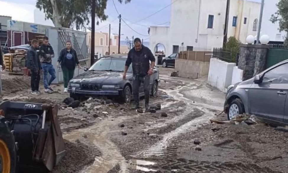 Κακοκαιρία Adel: Ζημιές και στη Σαντορίνη – Κατέρρευσε τοιχίο, λάσπες στους δρόμους – Βίντεο