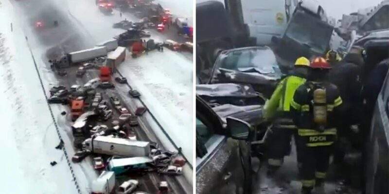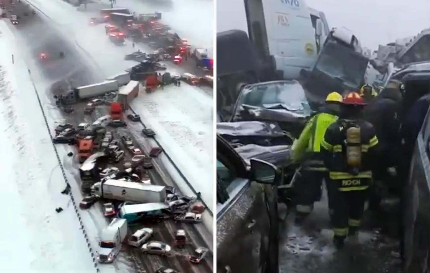 Καραμπόλα σχεδόν 50 οχημάτων σε αυτοκινητόδρομο στην Ιντιάνα από την έντονη χιονόπτωση (video)