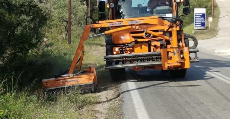 Καθαρισμός των χόρτων από το οδικό δίκτυο της Θάσου