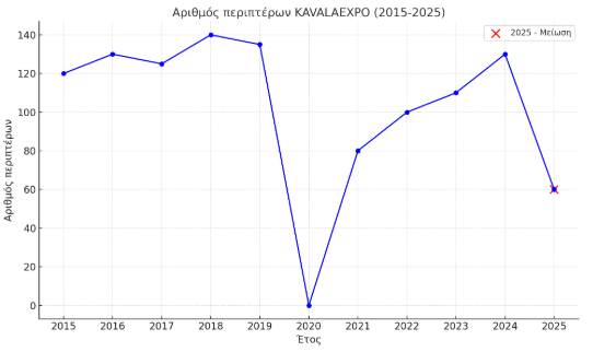 2025: ~60 περίπτερα (φέτος, σαφής μείωση)