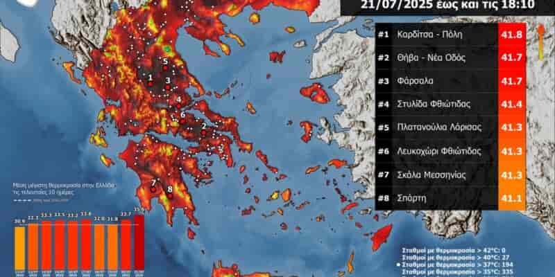 Καύσωνας: Ξεπέρασε τους 40 βαθμούς η θερμοκρασία σήμερα – Οι 8 «κόκκινες» περιοχές