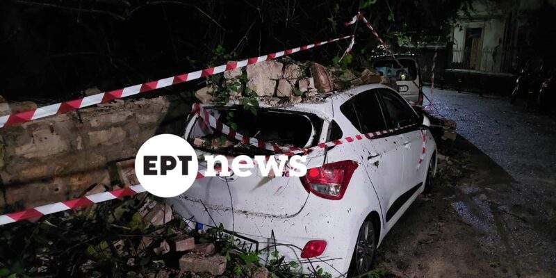 Κέρκυρα: Κατέρρευσε τοιχίο από την έντονη βροχόπτωση καταπλακώνοντας αυτοκίνητο