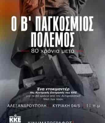 ΚΚΕ : Προβολή ντοκιμαντέρ «Ο Β΄ Παγκόσμιος Πόλεμος – 80 χρόνια μετά»