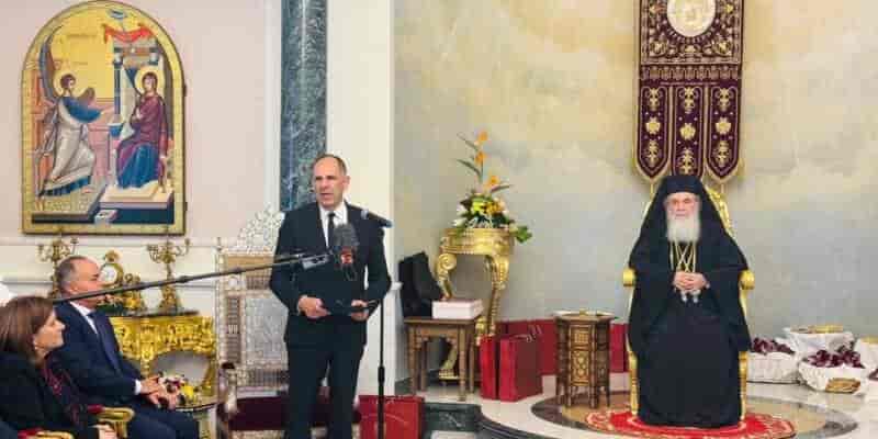 Την ικανοποίησή του για την πρόοδο των συνομιλιών με την αιγυπτιακή κυβέρνηση σχετικά με το καθεστώς της Μονής Σινά και την ελπίδα του για την ταχεία εξασφάλιση οριστικής συμφωνίας η οποία θα διευθετεί κατά τα καλύτερα συμφέροντα της Μονής μία μακραίωνη εκκρεμότητα, εξέφρασε ενώπιον του Πατριάρχη Ιεροσολύμων Χριστόδουλου και του άρτι χειροτονηθέντος Αρχιεπισκόπου της Μονής Σινά Συμεών, ο υπουργός Εξωτερικών Γιώργος Γεραπετρίτης, μιλώντας στην Αίθουσα του Θρόνου, στο Πατριαρχείο Ιεροσολύμων.