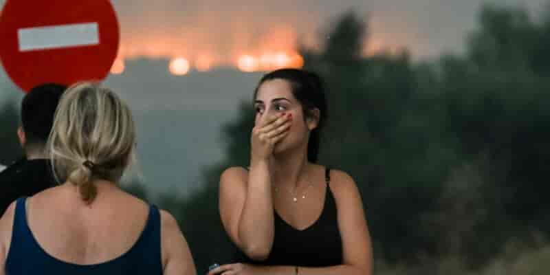 Σκηνές κόλασης στην Κάτω Αχαΐα, όπου οι Αρχές διέταξαν την εκκένωση της πόλης των 8.000 κατοίκων με μήνυμα του 112, λόγω της μεγάλης πυρκ…