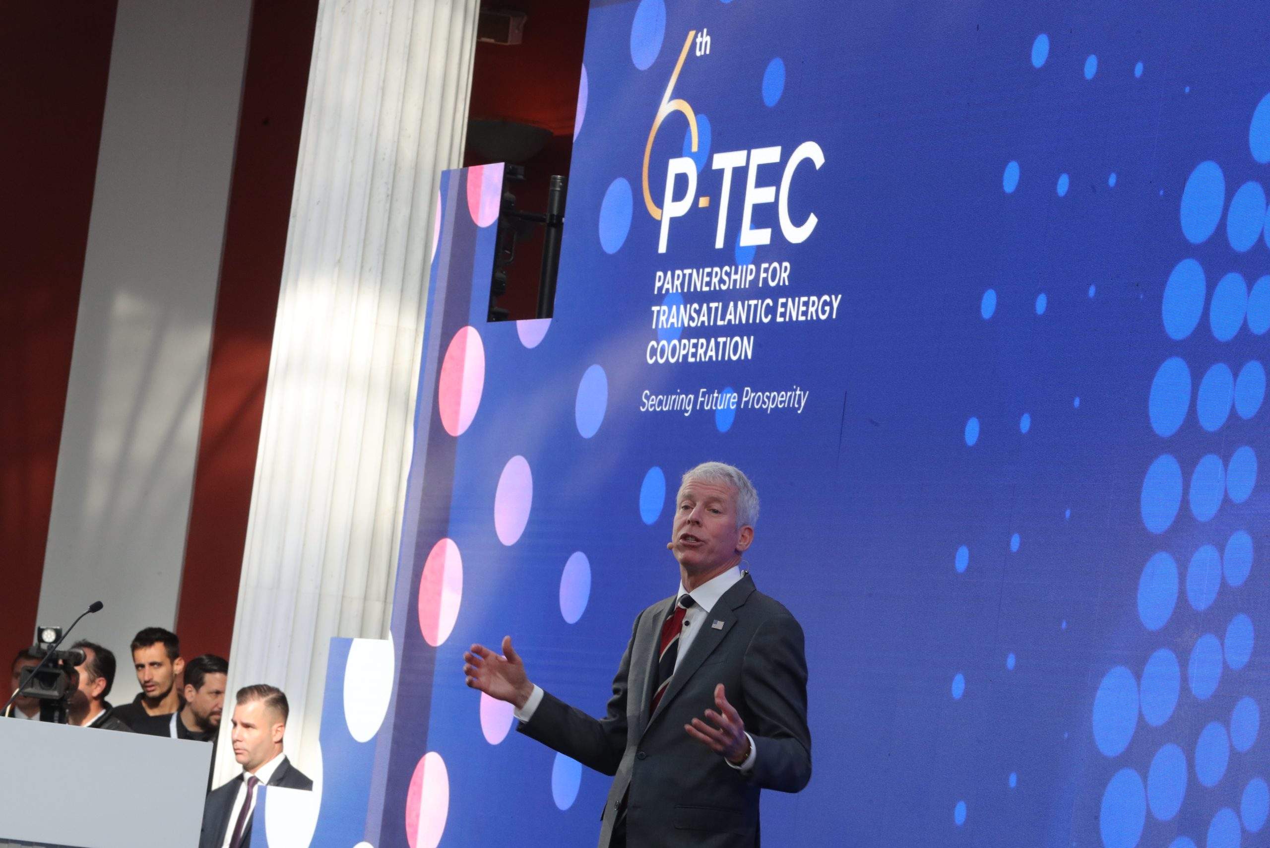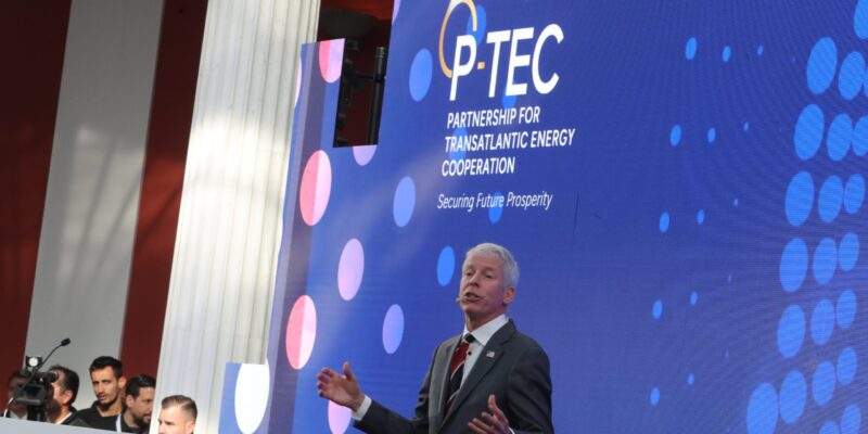 Ο υπουργός Περιβάλλοντος και Ενέργειας Σταύρος Παπασταύρου μίλησε για κοινούς στόχους από τις δύο πλευρές του Ατλαντικού: να εξαλειφθεί το ρωσικό φυσικό αέριο και η Ελλάδα να αποτέλεσει το φυσικό σημείο εισόδου για το Υγροποιημένο Φυσικό Αέριο (ΥΦΑ). “Χτίζουμε, είπε, μια μακρόχρονη συμμαχία που θα φέρει ειρήνη και ευημερία στην περιοχή μας”.