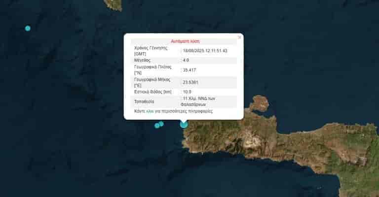 Κρήτη: Σεισμός τώρα στα Φαλάσαρνα