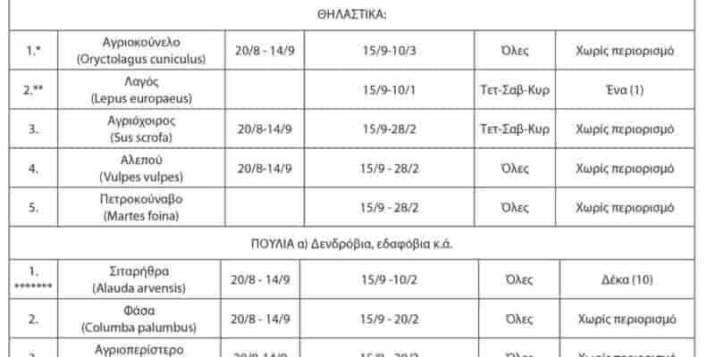Κυνηγετική περίοδος: Ξεκινά στις 20 Αυγούστου – Απεριόριστο το κυνήγι για 10 είδη, τι επιτρέπεται και τι όχι