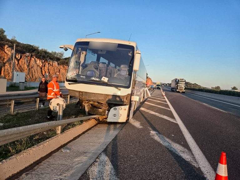 Λαμία: Λεωφορείο έπεσε στις μπάρες στην Εθνική Οδό, έξι τραυματίες
