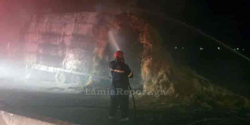 «Λαμπάδιασε» φορτηγό με άχυρο στον αυτοκινητόδρομο Ε65 και «μπλόκαρε» τους ταξιδιώτες στη Φθιώτιδα