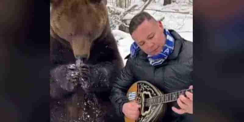 Λαρισαίος μουσικός παίζει μπουζούκι αγκαλιά με μία αρκούδα και γίνεται viral