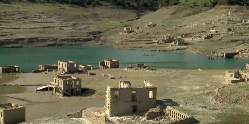 Λίμνη Μόρνου: Νέες αποκαρδιωτικές φωτογραφίες από drone – Συνεχίζει να αναδύεται το βυθισμένο χωριό Κάλλιο