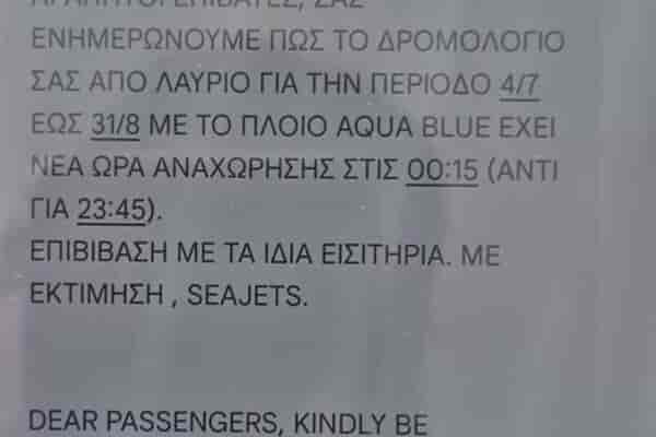 Λήμνος: Αλλαγή ώρας στο δρομολόγιο του AQUA BLUE κάθε Παρασκευή μέχρι 31/8– Ενημέρωση με SMS σε επιβάτες (εικόνα)