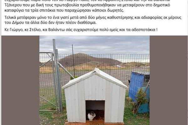 Λήμνος: Καταγγελίες και παρεμβάσεις για τα αδέσποτα, αλλά στο τέλος οι πολίτες πήραν το σπιτάκι στην “πλάτη”…..!