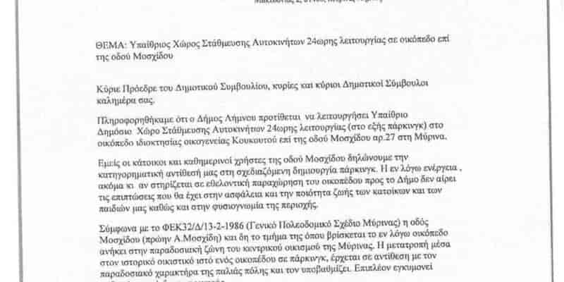 Λήμνος: «Όχι άλλο πάρκινγκ στη Μύρινα!» – Ξεσηκώνονται οι κάτοικοι της οδού Μοσχίδη