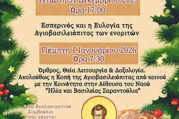 Λήμνος: Πρωτοχρονιά στο Πλατύ, ώρες και ακολουθίες στον Ιερό Ναό Αγίου Γεωργίου