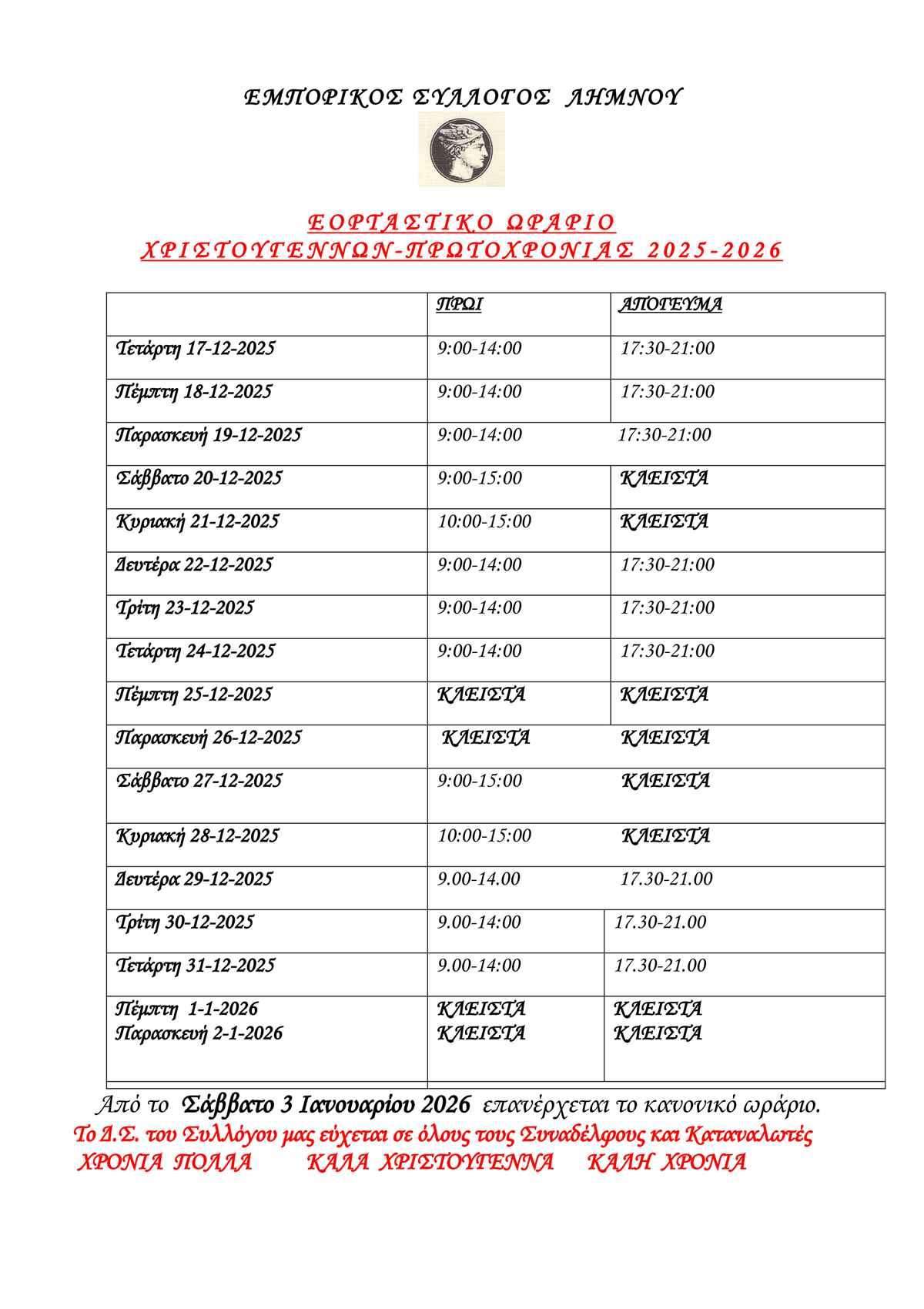 Λήμνος: Τελευταία Κυριακή πριν τα Χριστούγεννα – Ανοιχτά τα καταστήματα σήμερα!