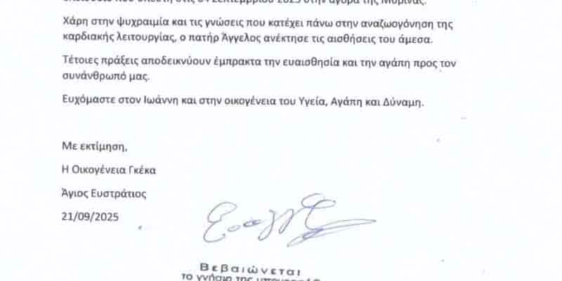 Λήμνος: Το Ευχαριστώ που ραγίζει καρδιές – Η οικογένεια του πατρός Άγγελου στον Ιωάννη Κάβουρα