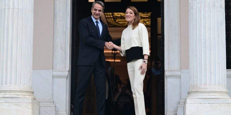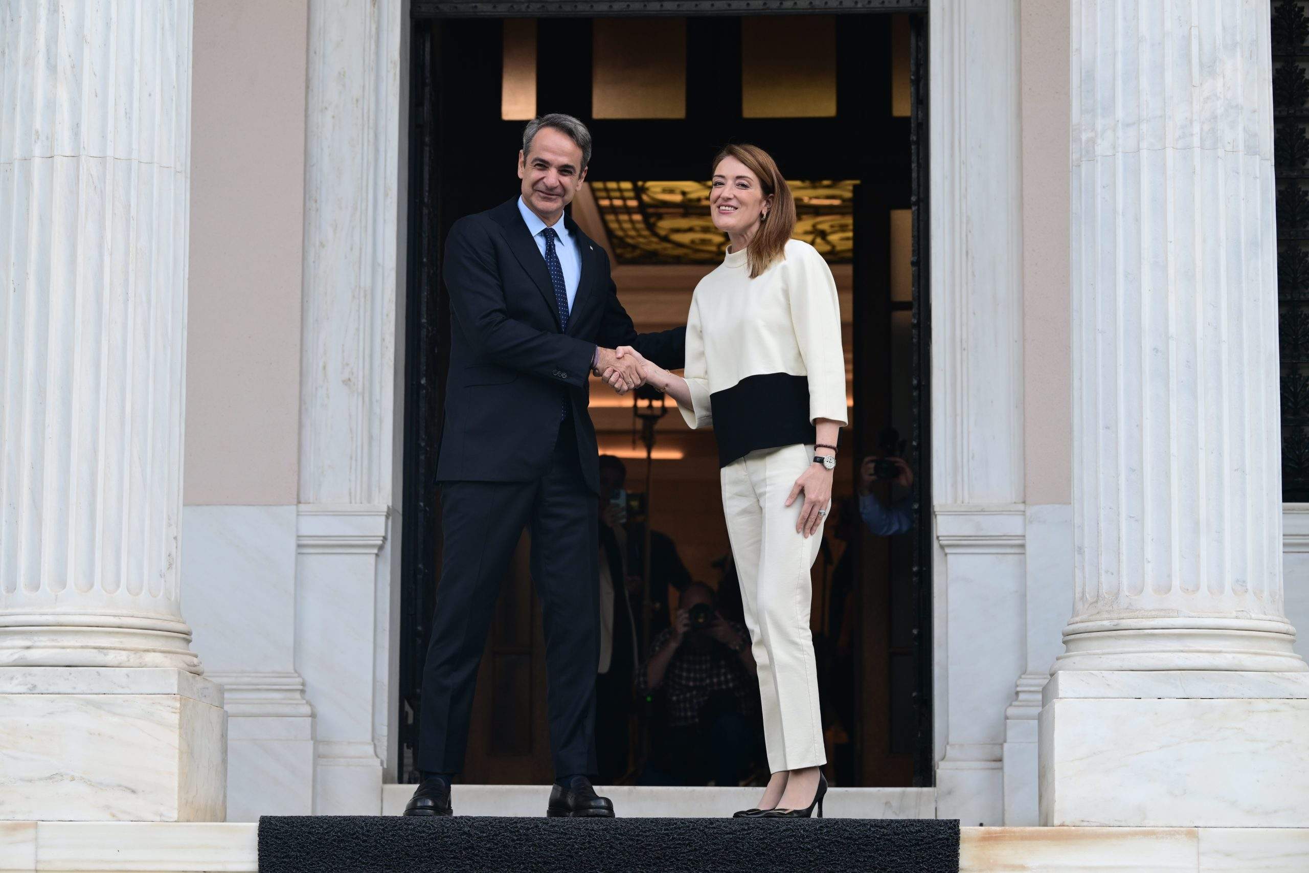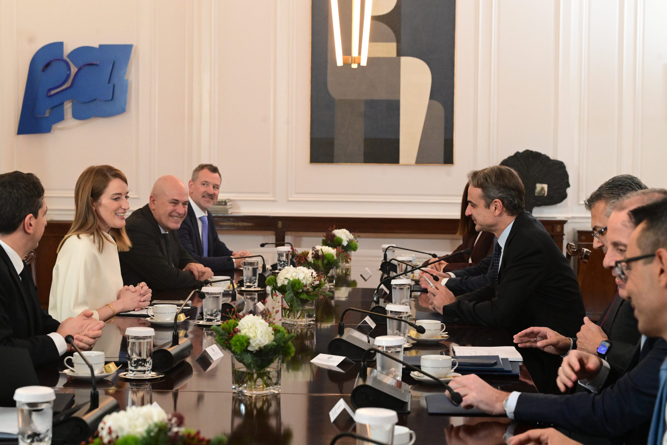 Σε απευθείας μετάδοση από το ertnews.gr η κοινή συνέντευξη Τύπου του Πρωθυπουργού Κυριάκου Μητσοτάκη με την Πρόεδρο του Ευρωπαϊκού Κοινοβουλίου Ρομπέρτα Μέτσολα αμέσως μετά τη συνάντησή τους στο Μέγαρο Μαξίμου.