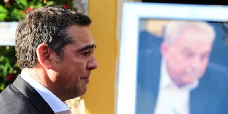 Λύγισε ο Αλέξης Τσίπρας στον επικήδειο για τον Αλέκο Φλαμπουράρη: «Σε ευχαριστώ για όσα μας έδωσες, ως σύντροφος, ως φίλος, ως παππούς των παιδιών μας»