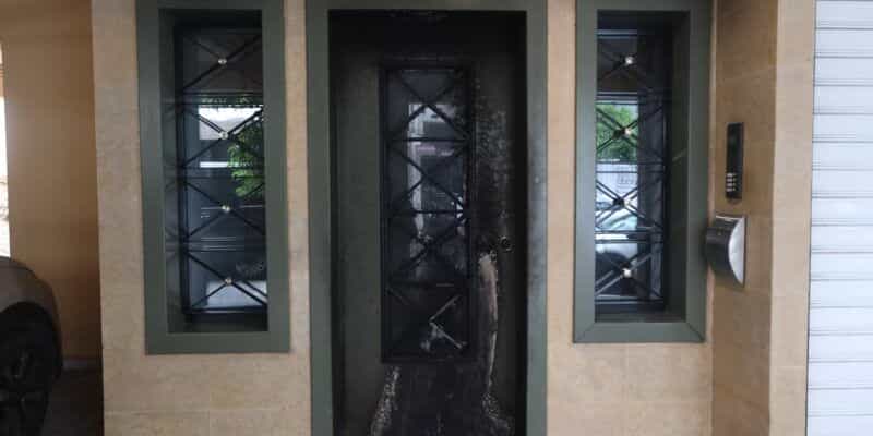 Παράλληλα, τόνισε «Τα χαράματα, περί τις 2,5 με 3 παρά, ξυπνήσαμε από μια έντονη αίσθηση καπνού, φωτιάς. Νομίσαμε ότι κάτι καίγεται στη γειτονιά. Βγήκαμε έξω. Ήδη ο γείτονάς μας απέναντι είχε καλέσει την πυροσβεστική διότι καιγόμασταν εμείς. Ήρθε πυροσβεστική και αστυνομία. Προσπάθησα να κατέβω. Είχε πολλούς καπνούς μέσα στο σπίτι, στο κλιμακοστάσιο. Πήρα μια βρεγμένη πετσέτα και κατέβηκα (…). Όπως είπα είχαμε άγιο γιατί δεν εξερράγη το γκαζάκι, πήρε φωτιά και έκαψε την είσοδο, έσπασαν τα τζάμια και γέμισε καπνούς μέσα το σπίτι».